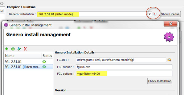 different port, modify the Genero Installation FGL options setting to a